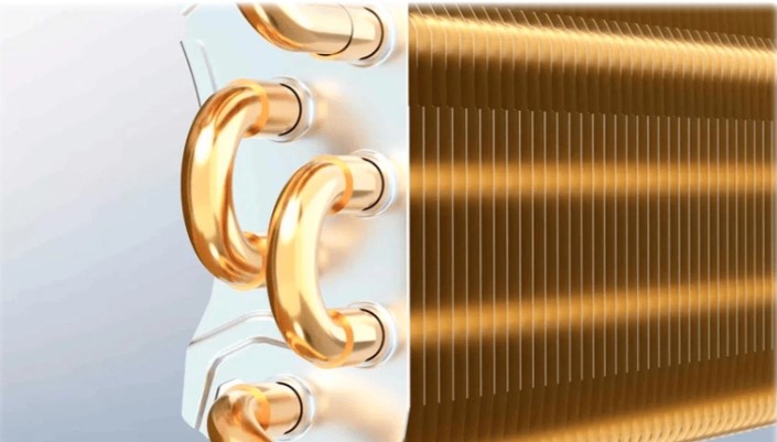 • Технология Golden Fin прави топлообменника по-устойчив на ръжда, мазнини, окислители и други корозивни елементи сравнение с обикновените ламели.